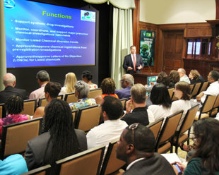 A vital part of the Foundation for a Drug-Free World mission is to continuously provide new and updated materials to users of the Truth About Drugs program. For example, the Foundation is making available materials to address the issue of new and heavily abused synthetic drugs. It collaborates with the U.S. Drug Enforcement Administration to make the information known, such as a forum held in the Church of Scientology International National Affairs Office in Washington, D.C. A Special Agent from the Synthetic Drugs and Chemicals Section of the DEA’s Office of Diversion Control briefed drug prevention and rehabilitation specialists from a wide range of private and governmental organizations about the law enforcement approach to these drugs, and Drug-Free World representatives spoke about the education aspect.